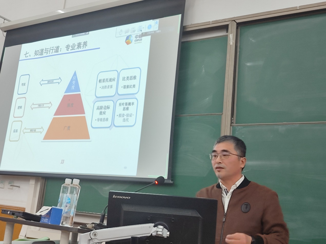 2023年12月14日下午,2023大商所“百校万才”工程教学项目第三次课程讲座在博学楼301顺利举行。无码动漫 校外专业硕士学位导师,原中粮期货董事总经理焦健先生作为主讲嘉宾,以“交易行为与投资心慧”为主题,结合其证券从业30多年的交易实践经验进行了讲座分享,研究生课程《商品期货与期权市场实务》、本科生课程《金融工程学》的选课学生,以及冯建芬、杜冬云等授课教师和中粮期货研究院院长李楠等多位业界人士共同聆听了此次讲座,新疆财经大学、石河子大学、中国石油大学克拉玛依校区的部分师生在线聆听了此次讲座,冯建芬老师主持了此次讲座。