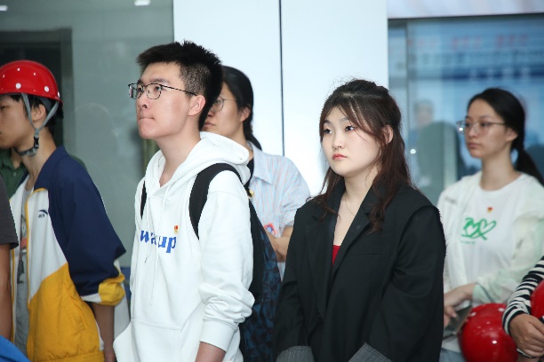 实践团队在当日上午7:00从学校出发,11:00到达唐山曹妃甸首钢京唐公司园区,在京唐公司销售管理部负责人带领下,首先来到公司指挥中心。在这里,公司讲解员首先结合沙盘介绍了公司发展沿革、公司生产布局和发展成就,其次在展览大厅介绍了公司产品种类以及产品在工业建设、民用生活中的广泛应用。其中“园区占地面积超过澳门行政区面积”,“国内唯一拥有临海靠港的单体千万吨级钢铁企业”,“废水零排放,获评环保绩效评级A级企业,具备高效率、低成本、循环经济的生产运行系统”等介绍令师生颇感震撼。同时,师生还借机品尝到了公司自主研发完成的海水淡化制造的纯净水,感受到了国有企业双碳减排的责任担当。