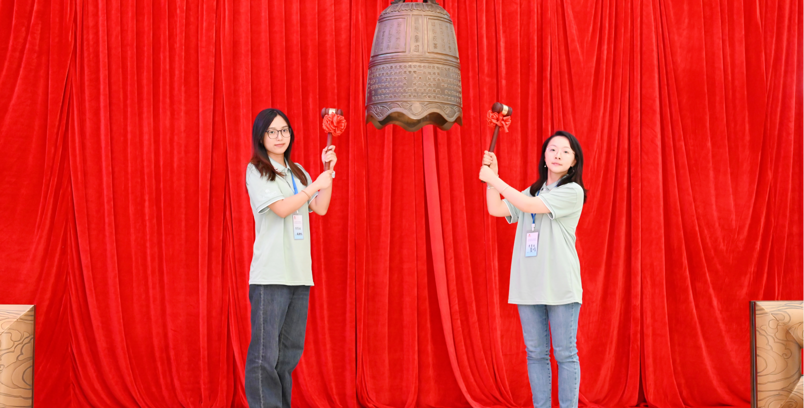 朱红大门和古朴的大钟凭添几分庄严,夏令营的同学们在此敲钟和合影留念,真切感受中国资本市场的普惠金融之路,遥想在未来的某一天,他们以法人代表的身份再次举起大锤,为自己的企业敲钟开盘,也许这一天并不太久。