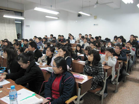 2010年4月19日 晚7点,“历九弥金”第九届金融文化节系列讲座之中国国际贸易学会会长施用海专场讲座在诚信楼331室成功举办。金融学院分党委副书记滕云老师莅临讲座现场。