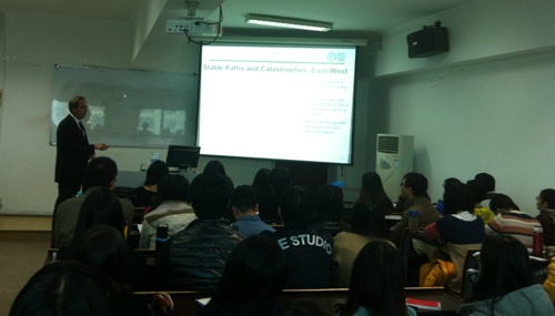 Ulrich Blum教授幽默风趣,旁征博引,从路径依赖问题出发,运用经济学、史学等多学科的研究方法,探讨中国东西部地区经济发展差异的原因,并对未来中国经济转型发展提出了自己的独到见解,使大家受益良多。同时,同学们对如何运用所学的经济学知识解决现实问题有了更深刻的体会,讲座在一片欢声笑语中结束。
