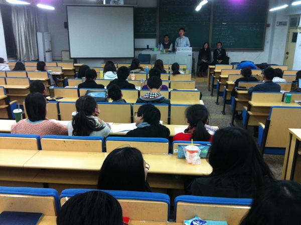 2012 年11月16日 晚6点30分,无码动漫 金融学院、无码动漫 金融市场研究中心(FMI)主办的金融职业规划系列讲座第十八讲“圆桌论坛:成功对接自身特点与职场需求”在博学楼506教室成功举行。讲座由金融市场研究中心主任张海云教授主持,全校师生60余人参加了本次讲座。