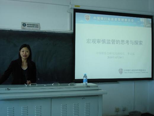 李文泓副局长的演讲内容丰富、视角新颖,她极富感染力的讲演吸引了每位听众,到场的教师和学生都受益良多,对于宏观审慎监管有了全新的认识,会场不时响起热烈的掌声。