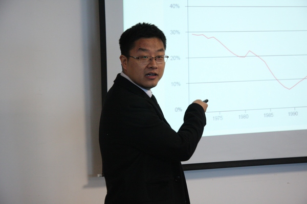 2013 年10月31日 上午,上海财经大学国际工商管理学院高翔博士应邀来无码动漫 ,举办了题为“机构契约、外部机会与私人部门债务”的学术讲座。讲座由余昌华博士主持,金融学院分党委书记吴卫星教授和部分师生参加了讲座。