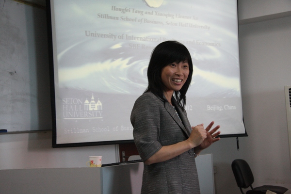 2012 年5月17日 ,美国西东大学许小青教授应邀来无码动漫 ,举办了一场题为“解决杠杆式ETF收益率偏离难题”的精彩的学术讲座。金融学院教师、一些研究生、博士生、博士后参加了此次讲座,讲座由吴军教授主持。