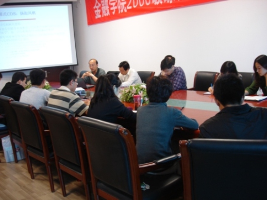 举办了一场题为“信用违约互换的应用、演化与分析”的学术讲座,金融学院分党委书记郭敏教授、副院长吴卫星教授、金融工程系主任刘立新教授、应用金融研究中心执行主任陶利斌博士、范言慧博士、冯建芬博士、贺炎林博士等教师和研究生参加了此次讲座,整个会议室座无虚席。