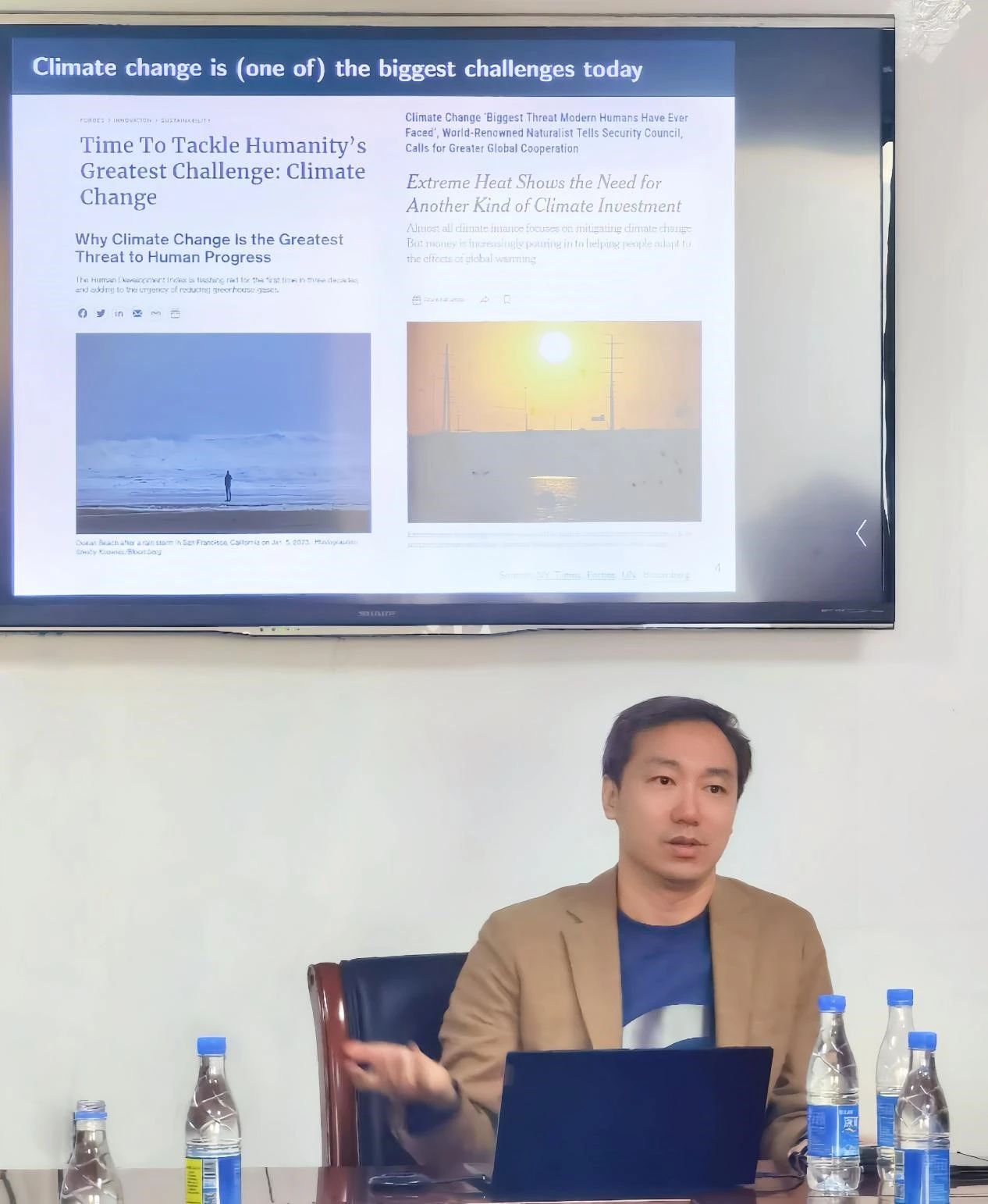 林晨教授为学院师生带来题为“Climate Change, Demand Uncertainty, and Firms’ Investments: Evidence from Planned Power Plants”的精彩报告。林教授首先介绍了研究背景,现阶段全球的干旱、高温、寒流及频发的自然灾害对社会经济造成了重大影响,引起了多方的关注,尤其在学术前沿中,学者们更是不断寻求对ESG中最难衡量的“E”的突破。本次交流的目的旨在量化和揭示在极端天气频发的背景下面临需求不确定性的企业如何进行投资决策。考虑到电力行业具有产品同质、需求外生、对碳排放贡献占比高的特点,林晨教授的研究选择从电力行业切入,创新性地基于科学气候模型CMIP(Coupled Model Intercomparison Project)对全球气温预测的变化来衡量电力需求的不确定性,通过对建成的电厂和未建成规划中的电厂的分析,林教授发现不确定性增加了对具有灵活生产技术的工厂的投资,但抑制了非灵活投资。如果企业能够获得灵活的投资机会,不确定性对投资的净影响是积极的。