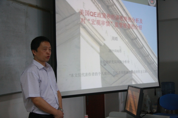 举办了一场题为“美国QE政策和经济形势的分析及对‘宏观审慎’监管框架的介绍”的讲座。金融学院院长丁志杰教授,副院长邹亚生副教授、吴卫星教授,金融系主任郭红玉教授、金融工程系主任刘立新教授、投资系主任王茂斌以及金融学院其他教师和博士后参加了此次讲座。讲座由邹亚生副院长主持。