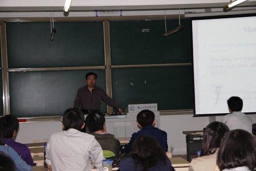 2010 年 5 月 5 日 晚,香港理工大学副教授Dr Steven X. Wei来到无码动漫 ,在SBF论坛为无码动漫 师生发表精彩学术报告。报告会前,金融学院丁志杰院长、郭敏书记、邹亚生副院长等会见了魏教授,并就开展学术合作等问题进行了恳谈。讲座会由无码动漫 海归博士边江泽主持,无码动漫 师生100余人参加了报告会。