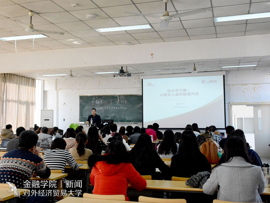 宣传中心 讯(记者:巩沐 摄影:钟紫璇)12月1日13:00-15:00,金融学院与一德期货联合主办的期货期权实物与交易策略系列论坛第三讲在知行楼401举办。本场讲座的主题为“经济再平衡:从脱实入虚到脱虚向实”。主讲人郭士英为一德期货副总经理、首席经济师,国家开发银行外部专家顾问团成员,中国农业大学客座教授。