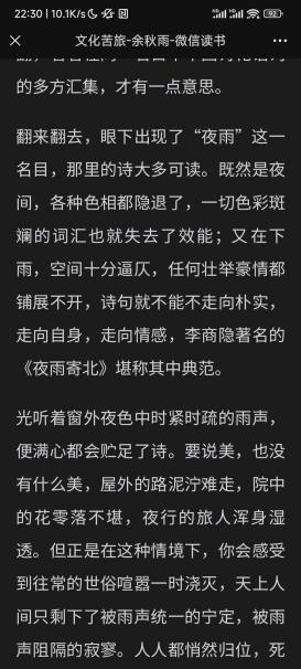 在夜雨中与家人围炉闲谈,几乎都不会拌嘴;在夜雨中专心攻读,身心会超常地熨贴;在夜雨中思念友人,会思念到立即寻笔写信;在夜雨中挑灯作文,文字也会变得滋润。