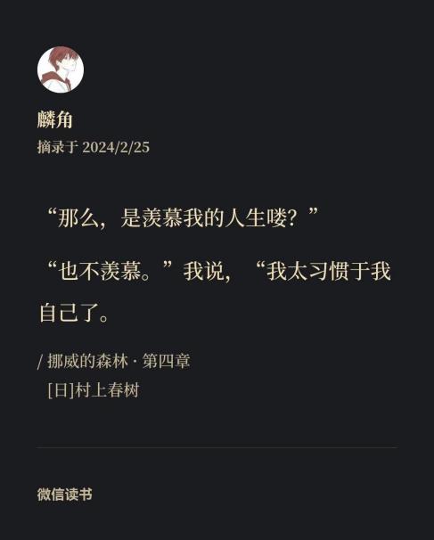 以前总是想着,我没办法成为除了我的任何人,倒也不怎么羨慕别人。不知道什么时候想法变了,没办法成了次要的事情,只是想着我大概和周遭的世界一同被永恒固定在某处,倘若腾挪移动到他处,哪怕只是一丝一毫,也成为了他人。