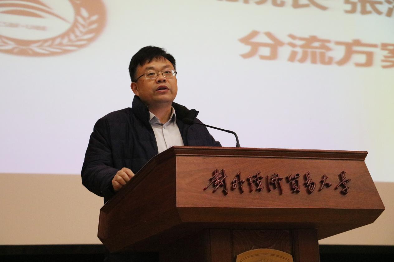 张海洋副院长首先简要说明2023级金融大类分流方案和程序,强调了“分数优先”的分流原则,分析2022级本科生的分流数据以供学生参考。他再三提醒同学们注意培养方案相关内容,希望同学们能够认真对待分流工作,根据自己的兴趣和特长选择适合自己的专业方向。同时,他还提醒同学们要认真对待学业,努力提高自己的综合素质和能力水平。