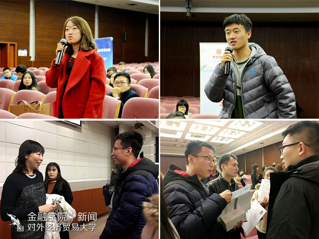 来到贸大校园,联讯证券的王玉梅说想起了自己最幸福的大学时光,工作后时常面对许多未知的问题,随时处于无形的压力下。大学生们如果能静下心来,了解自己,找到适合自己的工作,默默耕耘,最终会成就自己辉煌的一刻。正略钧策人力资源部经理周鑫则说大学是培养理论思维、提升专业素养的最好时机,能够为未来的工作打下基础。