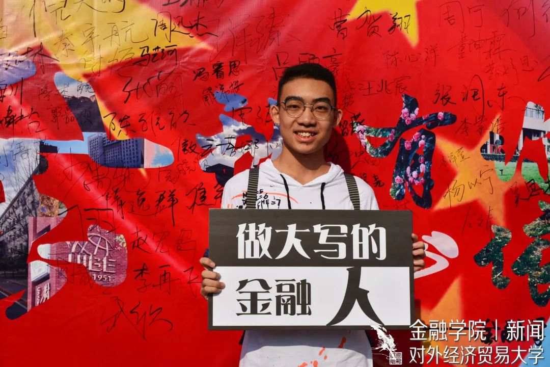 在金融学院报到处,迎新签名板格外引人注目。为庆祝建国70周年,学院准备了庆贺祖国华诞主题的趣味留言板,新生们纷纷挑选进行合影留念,他们眼中流露出的是青年人的朝气,是从此刻开始扬帆远航的信心。