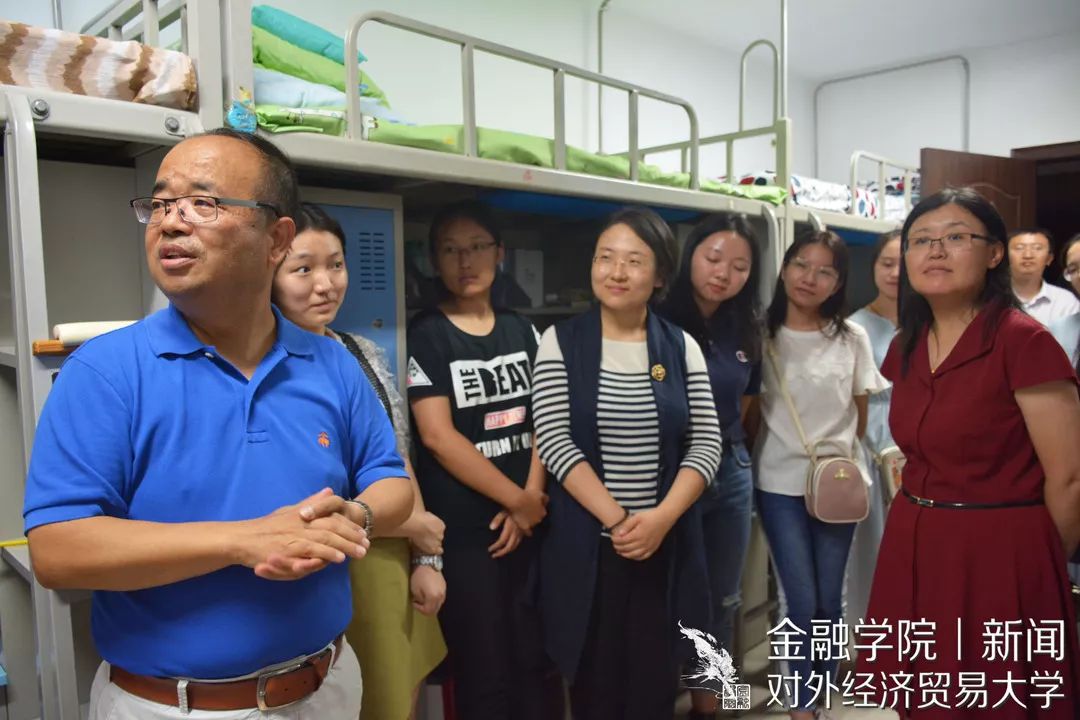 金融无码动漫新闻 宣传中心 讯(记者:秦江瑶 摄影:蒋玥辰、孙一铭)2019年9月7日下午五点半,金融学院领导前往新生宿舍,慰问、关怀2019级新生。金融学院院长邹亚生、副院长范言慧、党委副书记王春蕾、分团委书记兼2016级辅导员曲小杰、2019级辅导员陈玉平作为代表参与了本次活动,向新生传递学院的温暖、为他们的大学新生活指引方向。