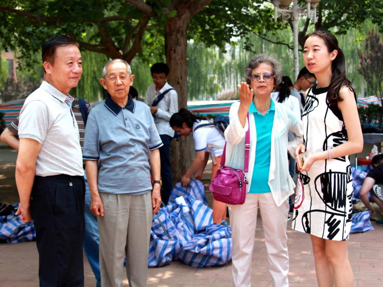 前校长、校关工委主任孙维炎在烈日下抵达现场关注学生们的工作,七十九岁高龄的他仍旧心系学生,与在场的志愿者亲切交流。校关工委高中武也向学生们深情讲述了曾在河北省贫困地区中学看到的一幕幕:数九严寒时,女生们站在院子里用凉水浇到头上洗头;宿舍里,只剩三条腿的桌椅垫了砖头仍旧在使用……“孩子们太不容易了,只能尽力去帮助他们”。