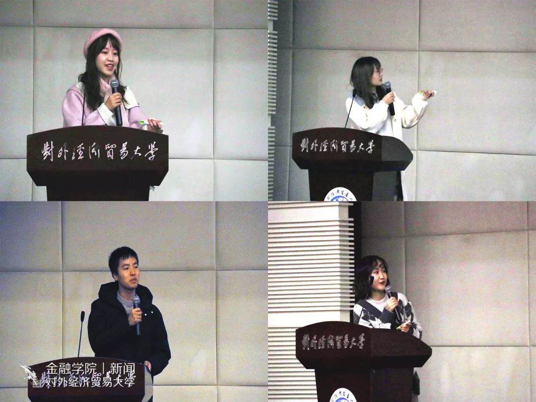 外联部副部长卢雨欣汇报了本学期各类赞助的具体数量,并回顾了短期内连续承办林建海专场报告、金融科技专题两场讲座时的忙碌与充实。生活实践部部长张婧铭在活跃的氛围中总结了走进名企之中信建投专场、新生金融安全讲座、寝室文化节、模拟炒股大赛等工作成果。