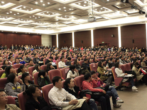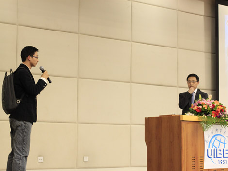 其后的互动环节结合了传统了的现场问答和别开生面的微博互动。观众可通过短信等形式全程参与讲座互动,而场外的观众也获得了向名师询问的宝贵机会。观众们针对不同的重点询问了关于中国历史经济、近期日本经济动态、白银投资等问题, 宋鸿兵教授一一给予了详尽而风趣的解答,赢得观众们的阵阵掌声。互动环节既体现了同学们关心天下局势的求知心,也一展 宋鸿兵教授对经济金融领域博古通今的风采。公开课在听众热烈的掌声中结束后,宋鸿兵教授为在场的书迷们进行现场签名售书,以偿贸大学子近距离接触名家的心愿。