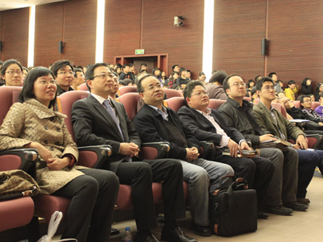 晚19:00,第十届金融文化节暨惠园名师大讲堂之红色货币之旅——宋鸿兵高校公开课于宁远楼三层国际会议厅举办。金融学院副院长邹亚生、学工部副部长樊泽民、金融学院分党委副书记滕云,分团委书记王祖瑞参加本次讲座。新浪微博全程跟踪报道、网络互动。时至18:30,会场已座无虚席。在观众的热切期待中,讲座拉开帷幕.