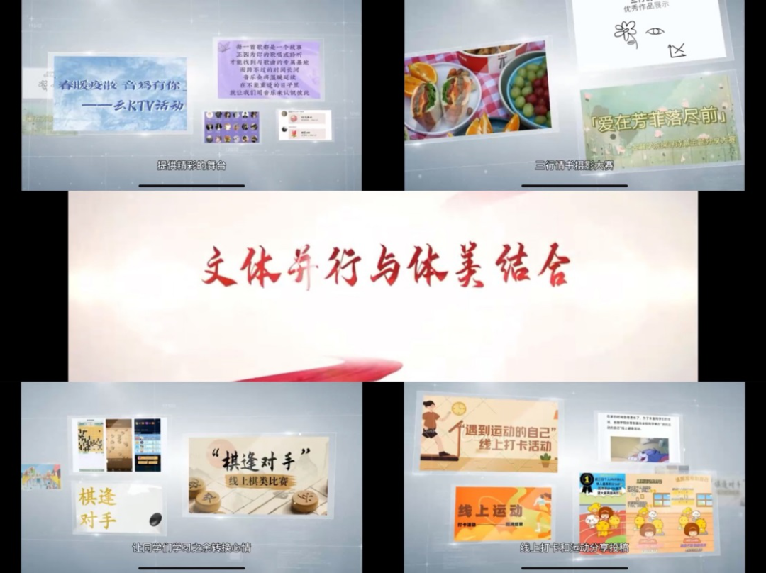 “青春正好,精彩激昂”。金融文化节不仅有专业的学术与实践论坛,更有丰富多彩的文体活动。“爱在芳菲落尽前”三行情书&摄影大赛,定格身边的美好瞬间;“春暖疫散,音为有你”云KTV为喜爱唱歌的同学们提供精彩的舞台,一展歌喉;棋类比赛让同学们在学习之余转换心情,放松头脑;线上打卡和运动分享投稿鼓励同学们居家学习的同时也要不忘运动,锻炼身体。