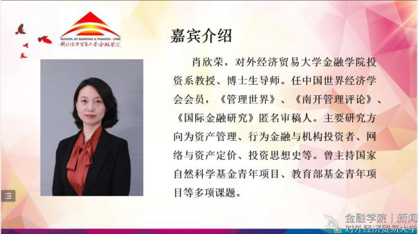 金融无码动漫新闻 宣传中心 讯(记者:赖沁和)2022年6月9日晚,“砥砺初心,青春献礼”第二十一届金融文化节闭幕式暨肖欣荣教授专场讲座于线上成功举办。金融学院党委书记齐天翔、副书记王春蕾和分团委书记穆晓志出席本次活动。