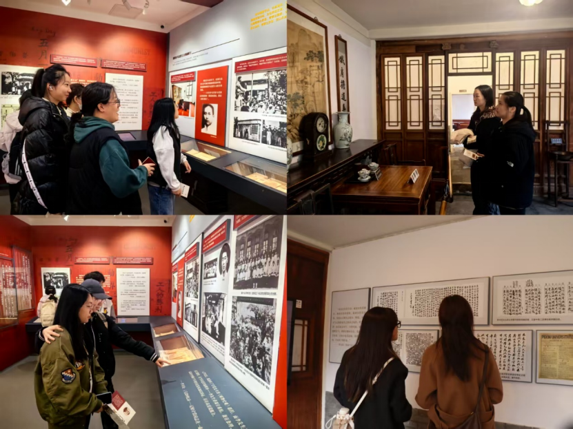 “星火燎大原,滥觞成瀛海。”穿过市井烟火缭绕的胡同,来到故居,朱红院门后,质朴的古院静静矗立。李大钊先生的半身铜像庄严肃穆,目光中饱含着对民族未来的深切期许,瞬间将师生带回那个觉醒年代的革命开端。