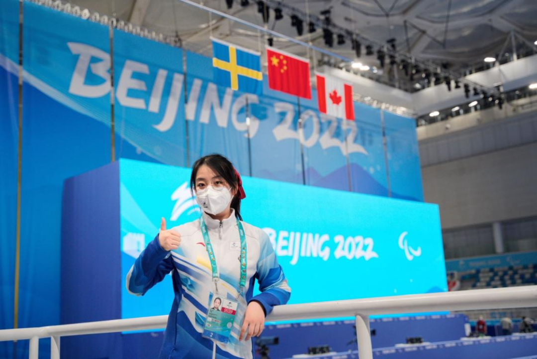 还记得在最后一场中国队对阵瑞典队的金牌赛上,很多志愿者都已经结束了自己的工作,我们仍然坚守在岗位上。我站在比赛场地的入口,为需要进出的运动员及时开门辅助通行。当中国轮椅冰壶队张明亮哥哥上冰从我面前经过时,我对他热情地喊了一声“加油!”,他也坚定地回复到“谢谢你,好嘞!”,这样的场景在冰面旁早已上演了一幕又一幕。在一轮一轮的比赛前,对上场前的各国运动员们说了一声又一声“Good luck”,收到了一个又一个灿烂友好的微笑与“Thank you.”