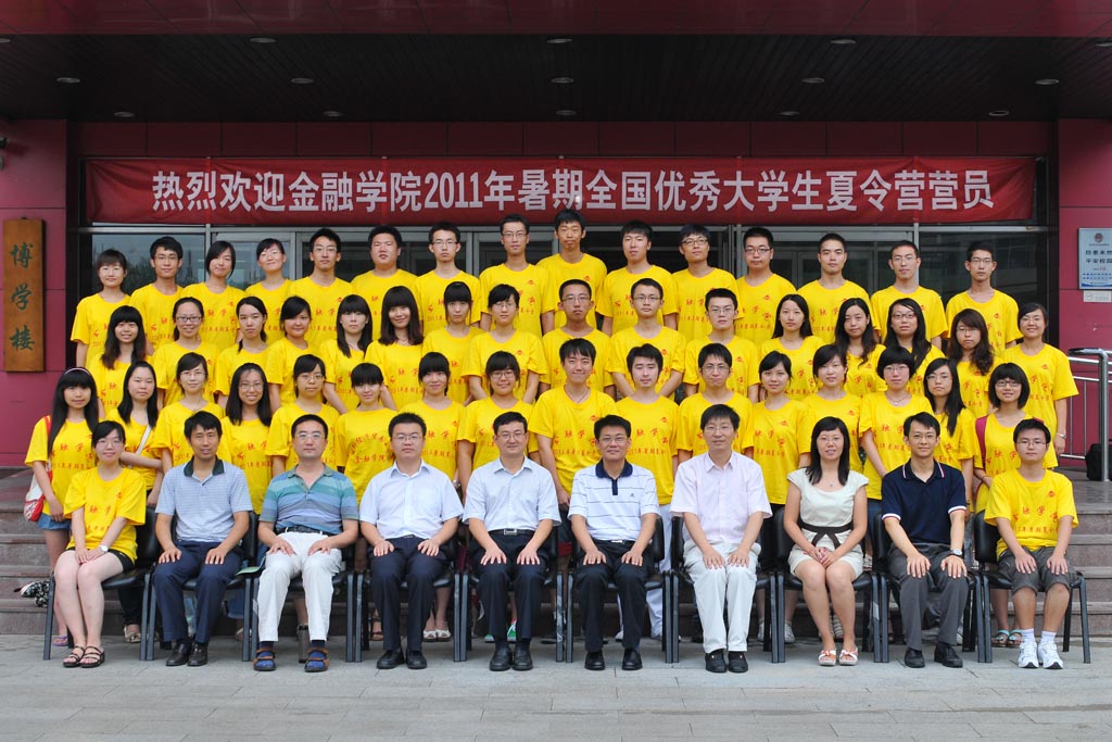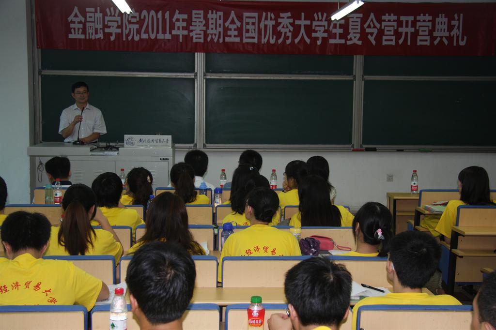 2011 年7月25日 上午9点,金融学院2011年暑期全国优秀大学生夏令营开营典礼在博学楼308教室举行。研究生部主任杨长春、研究生部主任助理蔡永明、金融学院院长丁志杰、副院长吴卫星、分党委副书记滕云、金融系系主任王剑锋、研究生辅导员崔凯及全体营员参加开营典礼。