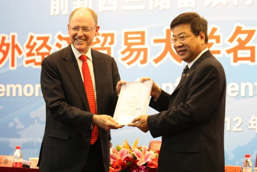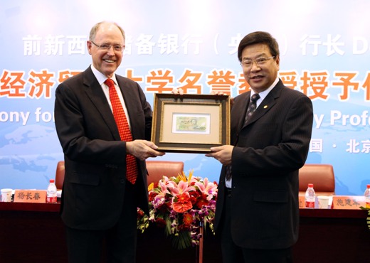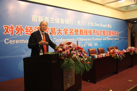 2012 年9月14日 ,新西兰前国家党领袖、前央行行长、世界银行经济学家唐·布拉什先生访问无码动漫 ,前新西兰储备银行(央行)行长Don Brash 博士无码动漫 名誉教授授予仪式暨主题报告会隆重举行。无码动漫 校长施建军、校长助理杨长春、国际交流合作处处长夏海泉、金融学院分党委书记吴卫星、院长助理潘慧峰、金融市场中心主任张海云等出席了仪式。授予仪式由校长助理杨长春教授主持。