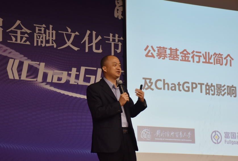 启动仪式结束后,沈绍炜先生为师生们带来了以“ChatGPT在公募基金行业中的应用”为主题的精彩讲座。讲座从公募基金的定义与组织结构出发,介绍了公募基金的监管严格、信息透明、责任重大等几大特点,详细讲述了金融支持实体经济发展的方法手段,结合中国的公募基金规模占GDP比重15%的数据分析,提出公募基金将迎来最美好的发展时代。之后,沈先生从实例入手,深入浅出的阐释了ChatGPT在公募基金行业中的应用场景及对公募基金行业的影响,向大家展现了ChatGPT在五大场景的实际运用及实现的可能性。此外,就公募基金招聘流程及入职前准备也为同学们的未来职业规划提供了建设性的方向指引。