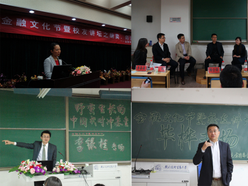 校友真情分享,传承金融精神。现就职于中国人民银行的姜晶晶、中国建设银行的韩会师、中粮信托的辛伟以及香港汇丰银行的胡奕等金融学院杰出校友重返母校,真诚地与学生分享了他们的求学经历以及工作经验,对同学们现在的学习和未来的职业规划都提出了宝贵的建议。校友热心地为学生答疑解惑,不仅给学生带来了方法上的指导,更给予了学生精神上的鼓励。