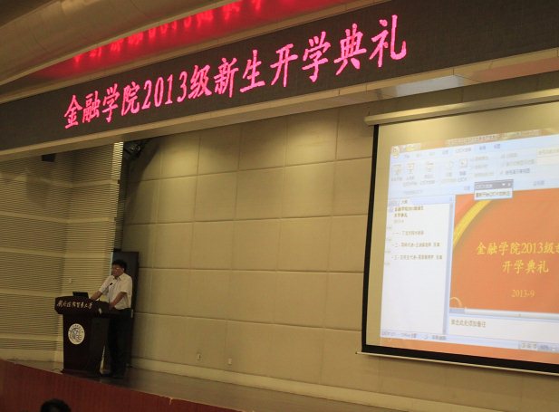 新生开学典礼不仅是一次见面交流会,更是一个帮助新生尽快融入学院,加强新生的归属感的良机;新生在这里倾听来自老师的教诲和高年级学长的建议,也感受着来自他们的鼓励和期许。希望金融学院2013级新生能够勤勉肯干,脚踏实地,为金融学院续写辉煌篇章!