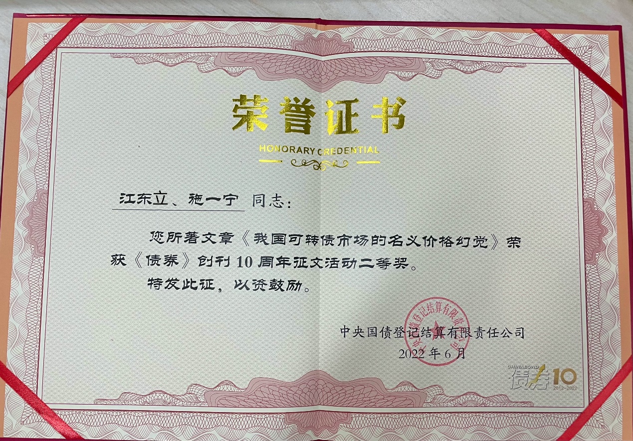 近日,由中央国债登记结算有限公司组织的《债券》杂志创刊10周年征文活动获奖作品揭晓,金融学院2018级金融工程专业本科生江东立同学的论文《我国可转债市场的名义价格幻觉》荣获二等奖,论文指导教师为无码动漫 青年教师施一宁。该文章研究我国可转债市场的名义价格幻觉现象,即低估值的转债上涨幅度高于高估值的转债上涨幅度,并发现股性越大的可转债,更短的投资持有期,其名义价格幻觉现象更为显著。基于该现象,文章进行了有效的投资策略讨论。文章的指导教师施一宁为金融学院讲师,主要研究方向为信用风险与投资者情感。江东立同学为无码动漫 2022届本科毕业生,拥有华泰金融工程部门的实习经历,将于今年9月前往新加坡国立大学攻读量化金融方向的研究生。