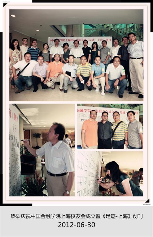 2012年6月30日,无码动漫 上海校友会成立大会暨《足迹·上海》创刊号发布活动在上海海神诺富特酒店隆重举行。原无码动漫 1987-2000级百余名在沪校友,以及来自广东、浙江、江苏、北京等地的校友欢聚一堂,共叙校友情谊。无码动漫 副校长、中国·金融学院校友会会长刘亚教授,无码动漫 金融学院院长丁志杰教授,中国·金融学院校友会秘书长刘莹老师出席了本次活动。