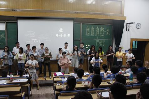 高水平运动队员畅谈中国梦 在第二环节猜词游戏中,各班派出男女生各一名合作完成,竞猜的词语也极具特色,有的是最新的社会热点词汇,考察大家对时政民生的关注,有的是与大学生活密切相关的高频度词汇,考察同学们对学校学院的了解,还有的词语要求只能用肢体语言表达,形形色色的表现方式引来了大家阵阵笑声。猜词环节尽展各班同学之间的配合默契度与交流沟通指数。其中最有默契的当属高水平运动队金融管理班,在猜体育类名词时,只需几个形象的动作对方就能准确猜出,引得现场喝彩连连。