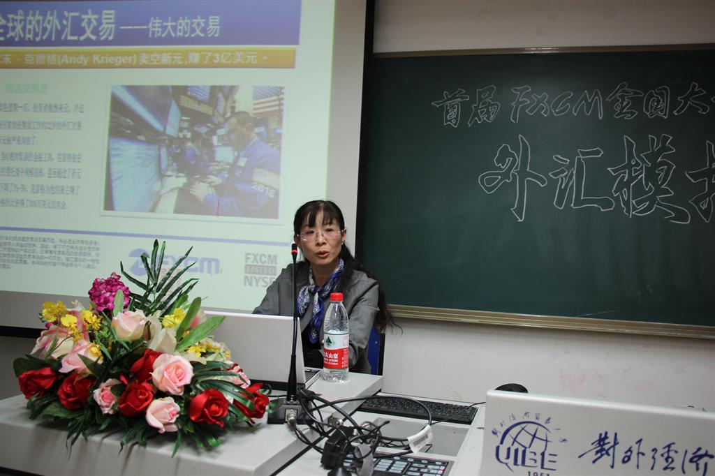 金融学院分团委学生会 讯(记者:张梦莹)为帮助学生了解外汇市场运作机制,积累外汇投资知识,充分备战首届FXCM全国大学生外汇模拟交易大赛,2013年10月17日18:30,金融学院举办首届FXCM全国大学生外汇模拟交易大赛宣讲会,福汇集团亚洲有限公司业务发展副总裁杨子亚女士出席了本次大会并做宣讲。