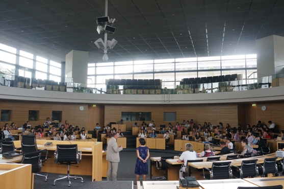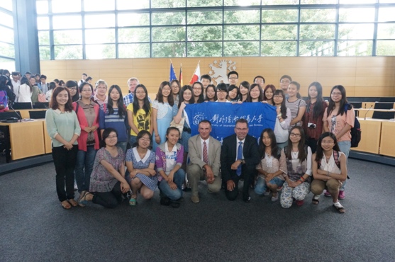 在理论学习的间隙,同学们还获得了与耶拿市长亲密接触的机会,提出了一系列有关经济和城市发展的问题与市长和市政府工作人员交流探讨;在图林根州议会大厅,同学们还与图林根州部长和州议员对话交流,在听取介绍的同时,提出了自己的建议,受到了图林根州议员的热情接见。