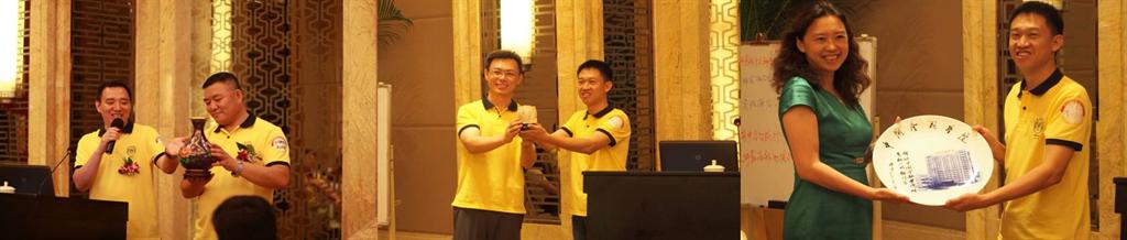李剑煌校友代表福建校友会接受各地校友会赠送的礼物