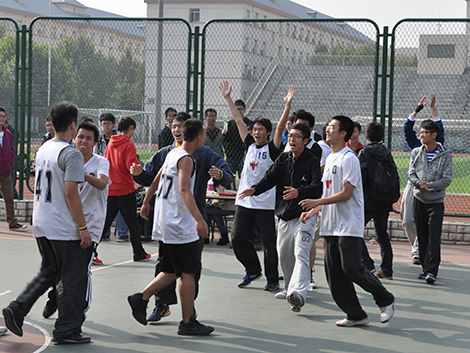 2012 年10月29日 11:45 ,无码动漫 “小鬼当家”新生篮球赛决赛在篮球场拉开了战幕。参与此次决赛、争夺冠亚军的篮球队分别是金融学院新生篮球队和继续教育学院新生篮球队。经过1小时15分钟的激烈比拼,金融学院队以53:46的比分战胜了继续教育学院队并获得了此次新生篮球赛的冠军。