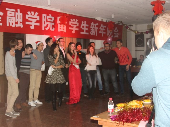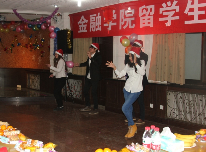 2014年12月18日晚,金融学院2015年留学生新年晚会在国际学院地下一层多功能厅隆重举行。出席本次新年晚会的嘉宾有:国际学院刘金兰书记、杜培源老师、李静老师,金融学院范言慧副院长、给留学生授课的李永龄老师、冯建芬老师以及金融学院留学生教务员董荣老师。