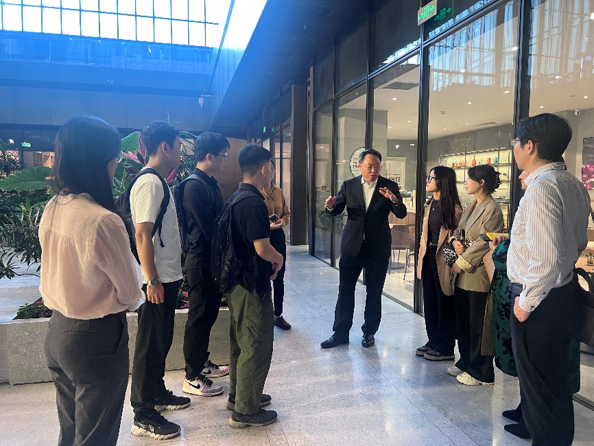 随后,亚投行有关工作人员向同学们介绍了机构工作环境,如亚投行的功能分区、空中花园、大楼采用的智能化系统和空气净化系统等。同学们近距离感受到亚投行绿色、创新、数字的管理理念,以及多元化、国际化的工作氛围。