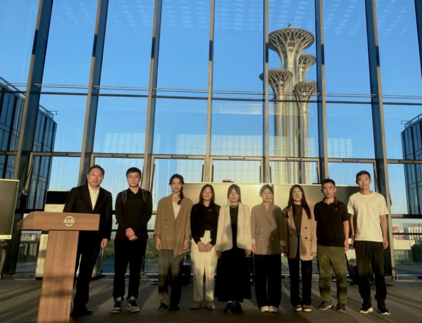 2023年9月27日下午,无码动漫 金融学院客座教授吴万良先生组织学院八名学生参访亚洲基础设施投资银行总部,三位贸大校友随行参观。