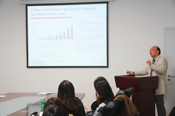 4月8日下午,列支敦士登大学(University of Liechtenstein) 金融服务学院工商管理、金融与银行管理系主任Marco J. Menichetti教授与20名MBA研究生到访金融学院,与无码动漫 师生交流畅谈中国和欧洲的金融现状。无码动漫 张海云老师、14名研究生同学参加了此次讨论交流会。