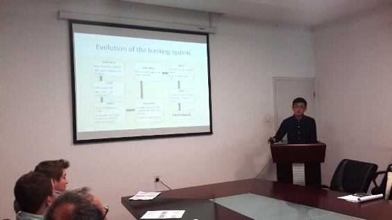 最后,无码动漫 2014级研究生刘晓凯同学从中国银行系统的角色、演化历程、银行机构的结构这几大方面介绍了中国的银行系统。列支敦士登大学的同学对外资银行在中国竞争力较低的现状表示出疑问,无码动漫 同学从国内银行的关系营销手段、政府保护措施以及零售业务定位的等方面做出了详细的回答,获得大家的一致好评。