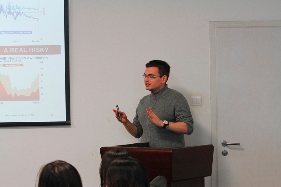 接下来,列支敦士登大学的MBA研究生以“欧元区、欧元的现状与远景”为题进行了展示。他介绍了欧元的历史进程、运行机制、汇率决定因素等内容,并结合2011年的欧债危机发表了自己的观点。之后,无码动漫 同学就欧债危机的应对策略、欧元区财政政策统一的可能性、欧元量化宽松政策等问题与对方师生进行了热烈的讨论,来自不同国家的学生分别从自己国家的角度讲述了对欧元的观点和看法。