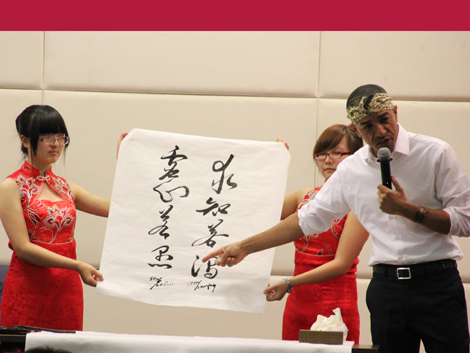 讲座伊始,主持人询问了马克对于北京的印象。马克表示,作为一名久居深圳的异国人,他非常喜爱北京的食物与其深厚的历史文化底蕴。接下来,主持人就纽约时报曾刊载过出自马克之手的《深圳态度》与其展开讨论。马克提到,他曾在深圳目睹一家老小在傍晚时候悠闲散步的场景,这让他想起了中国的老话“智者乐山,仁者乐水”与“智者静、仁者动”。他认为,人们只有在宁静中才能真正成就智慧、实现自我。此外,针对“如何在多元文化背景下找到归属感”这一问题,马克先生提出了两个观点——首先,我们必须努力尝试去尊重并理解别国文化;其次我们可以通过当地的慈善活动来进一步了解自己、了解这个国家。在马克先生努力理解中国文化的过程中,他开始学习书法。他认为书法与音乐相通,是另外一个了解自我的途径。同时,书法让他感受到了宁静的力量。趁此机会,主持人邀请马克在现场进行书法展示。马克先生欣然答应,用流畅的行草写下“求知若渴,虚心若愚”八个大字送给无码动漫