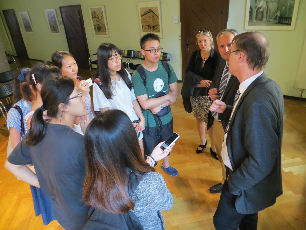 在金融理论知识学习之余,大家还来到图林根州议会大厅,在听取介绍的同时,大家提出感兴趣的问题与州议员对话交流,得到了图林根州议会工作人员的热情接待;在耶拿市政厅,大家听取了有关耶拿市政治、经济、文化的介绍讲座,同时有与耶拿市长亲切交流的机会。