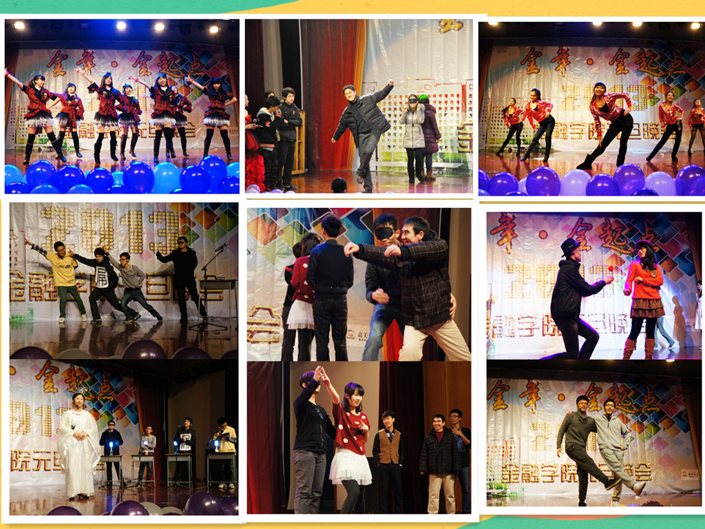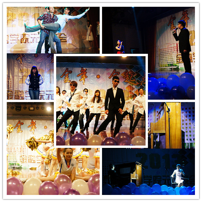 2012 年12月16日18:30,金融学院2013元旦晚会“金年·金起点”在大学生活动中心如期上演。金融学院院长丁志杰,分党委书记兼副院长吴卫星,分党委副书记王春蕾,分团委书记王祖瑞,各年级辅导员及部分教师出席了晚会,与同学们欢聚一堂,共迎新年。