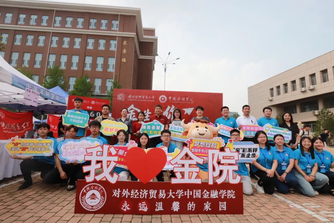 此外,本次迎新精心准备一面迎新主题墙、一块“金融牛牛”主题合影区、一台专属计数打卡器、一个“金融牛牛”文创纸袋、一件文化衫以及多处学院特色拍照打卡点等。其中,结合中国人民抗日战争暨世界反法西斯战争胜利80周年重要时间节点,设计多款主题文艺手持板,让震撼历史的“抗战精神”与闪耀未来的“金院新生”同框。